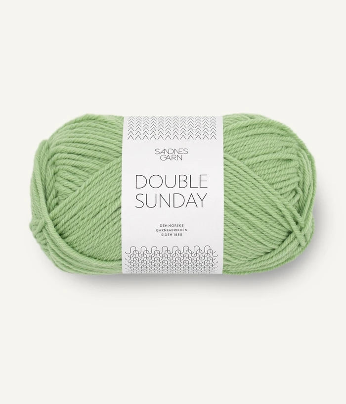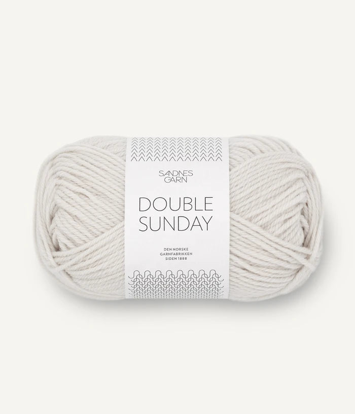 Double Sunday är vår tjockaste variant av 100% merinoull och det perfekta basgarnet: Ett tjockt icke-superwash behandlat garn som kan stickas ensam eller med dubbel tråd. Eller stickas tillsammans med Tynn Silk Mohair.